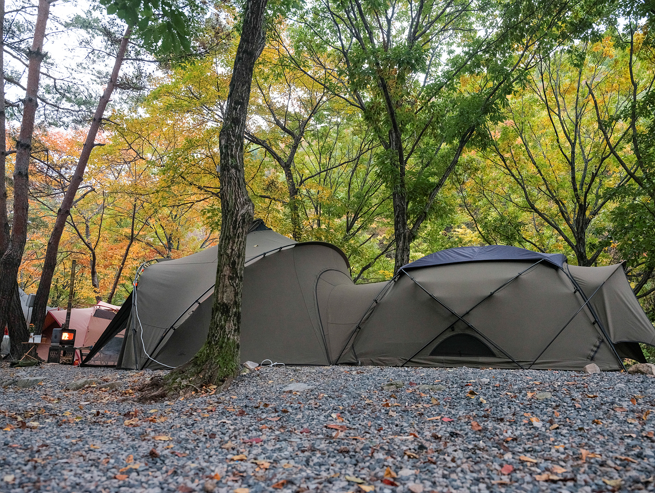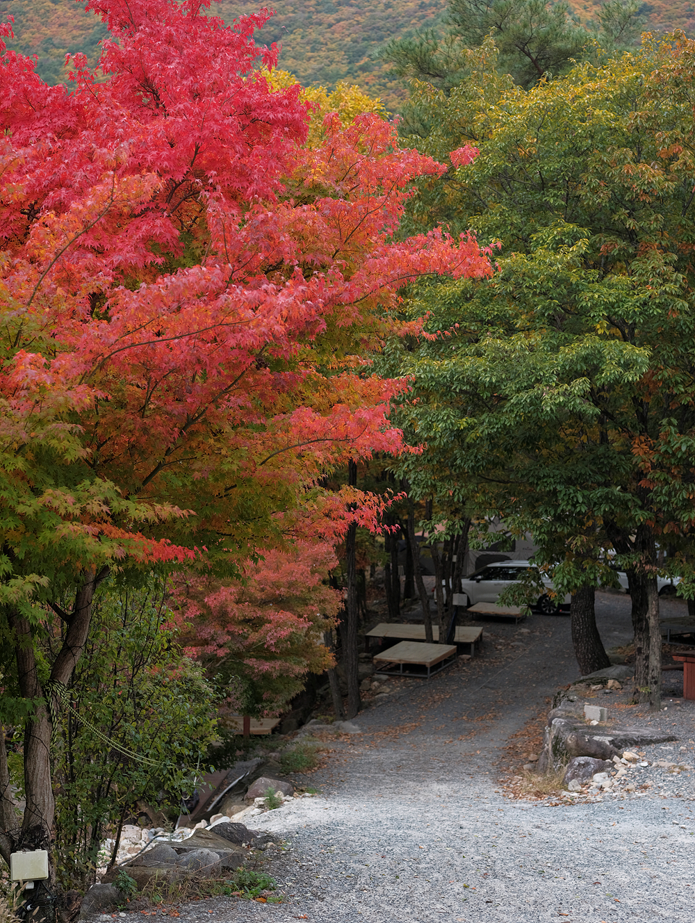 이번 캠핑은 단풍이 좀 이를 거 같아 내심 별로 기대를 하지 않았는데 뜻밖에도 환상의 단풍을 선물 받았습니다.