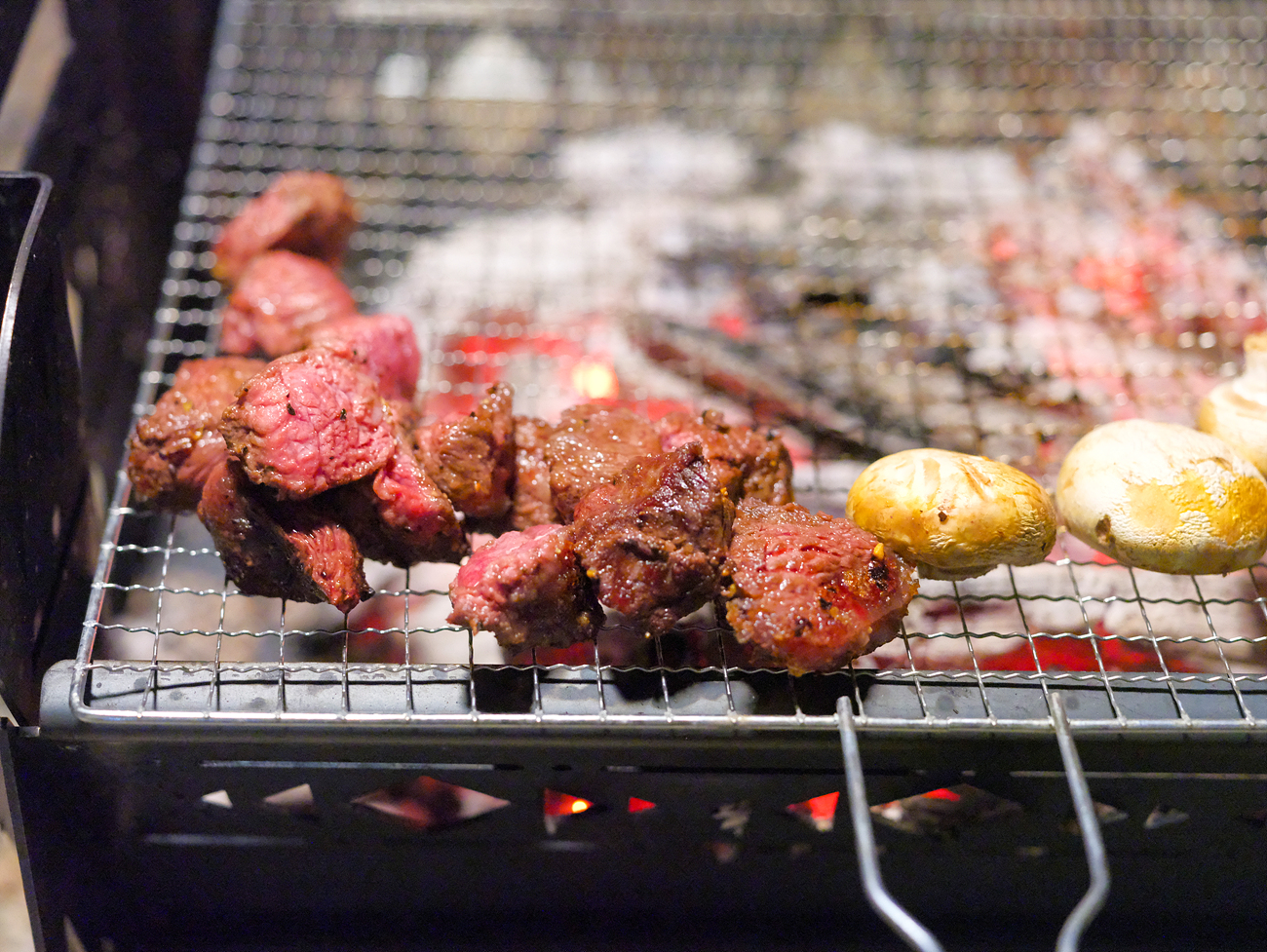 불멍 후 숯이 좋아서 스테이크를 올려