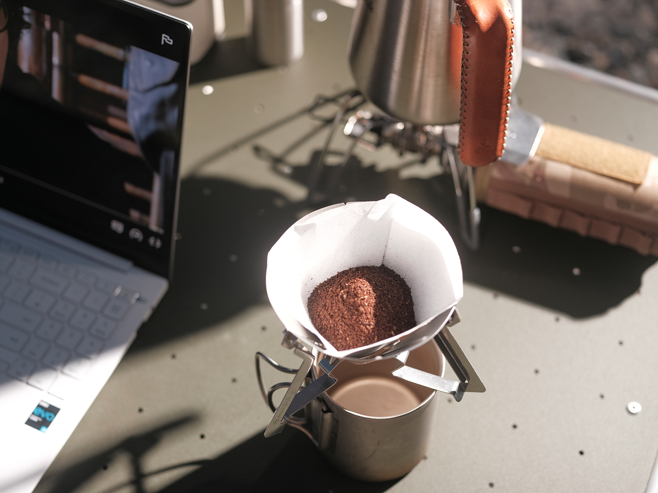 좀 전에 보던 영화도 마저 볼 겸 커피도 마실 겸 강동바닷가에 세팅해서 물 끓이고